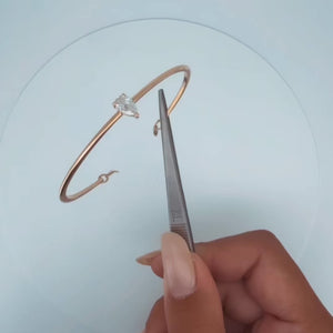 Un essentiel de la joaillerie, à la fois chic et intemporel. Ce bracelet jonc en or 18 carats séduit par sa finesse et son élégance, sublimé par une pierre centrale de 0,50 ct montée sur griffe. Forme au choix : marquise, poire, ovale, rond… à vous de choisir celle qui vous fait briller.